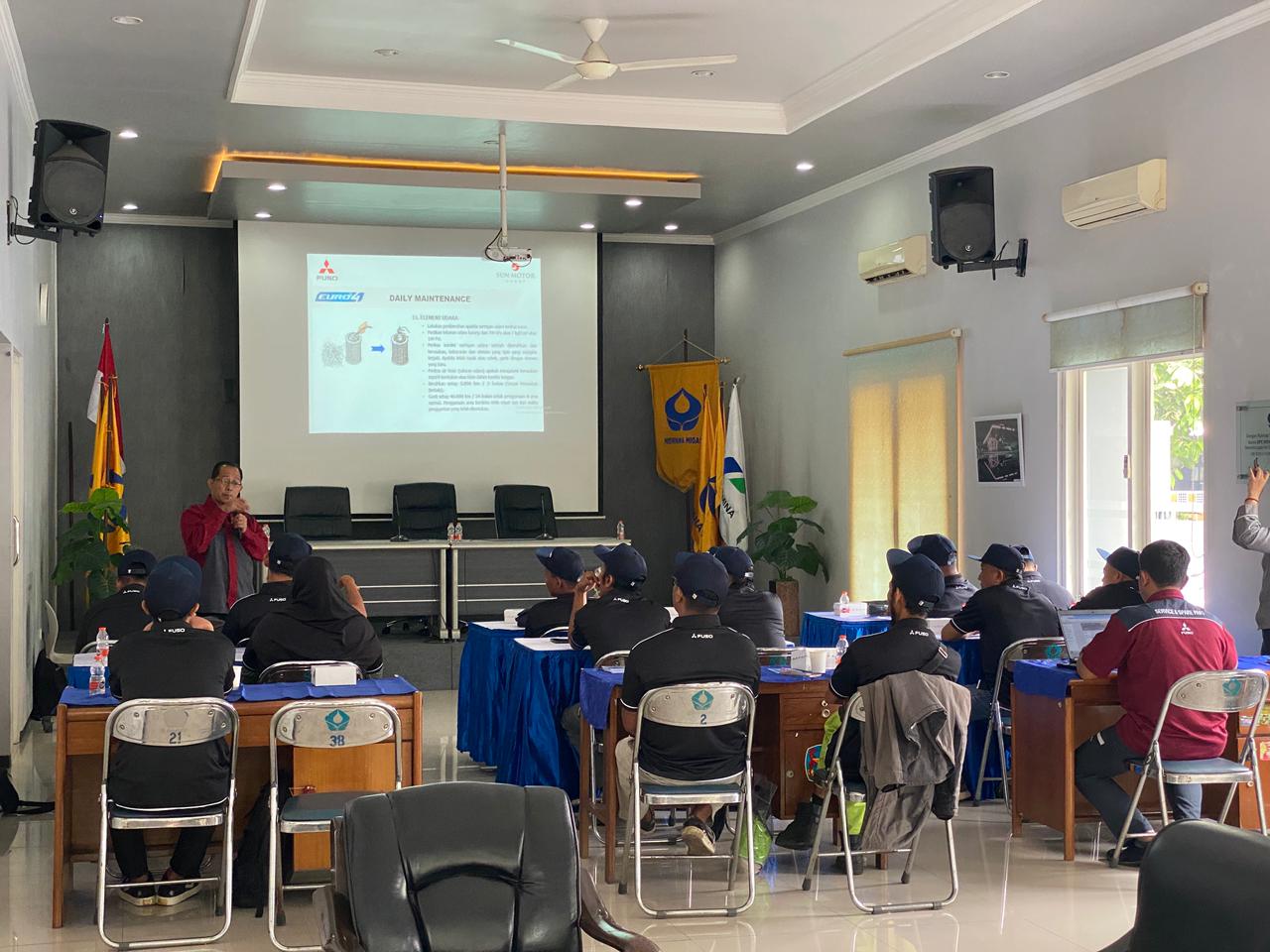 Acara ini menghadirkan Beni Service Manager PT Sun Star Motor Malang, sebagai pembicara. Dalam materinya, Beni menjelaskan pentingnya safety driving, perawatan kendaraan harian (daily maintenance), serta teknik eco driving guna mendukung operasional kendaraan yang aman, efisien, dan ramah lingkungan. ( Rio / Humas)